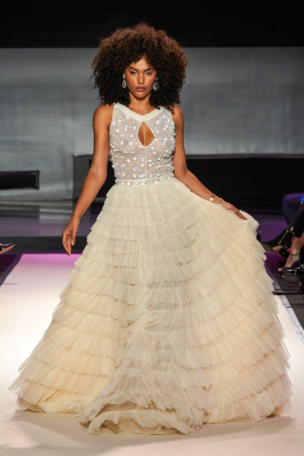 look 18 - maxi robe Christophe Guillarmé en tulle écru avec jupe à micro-volants et buste rebrodé - off-white tulle mawi dress with frilled skirt and beaded bust - Leila