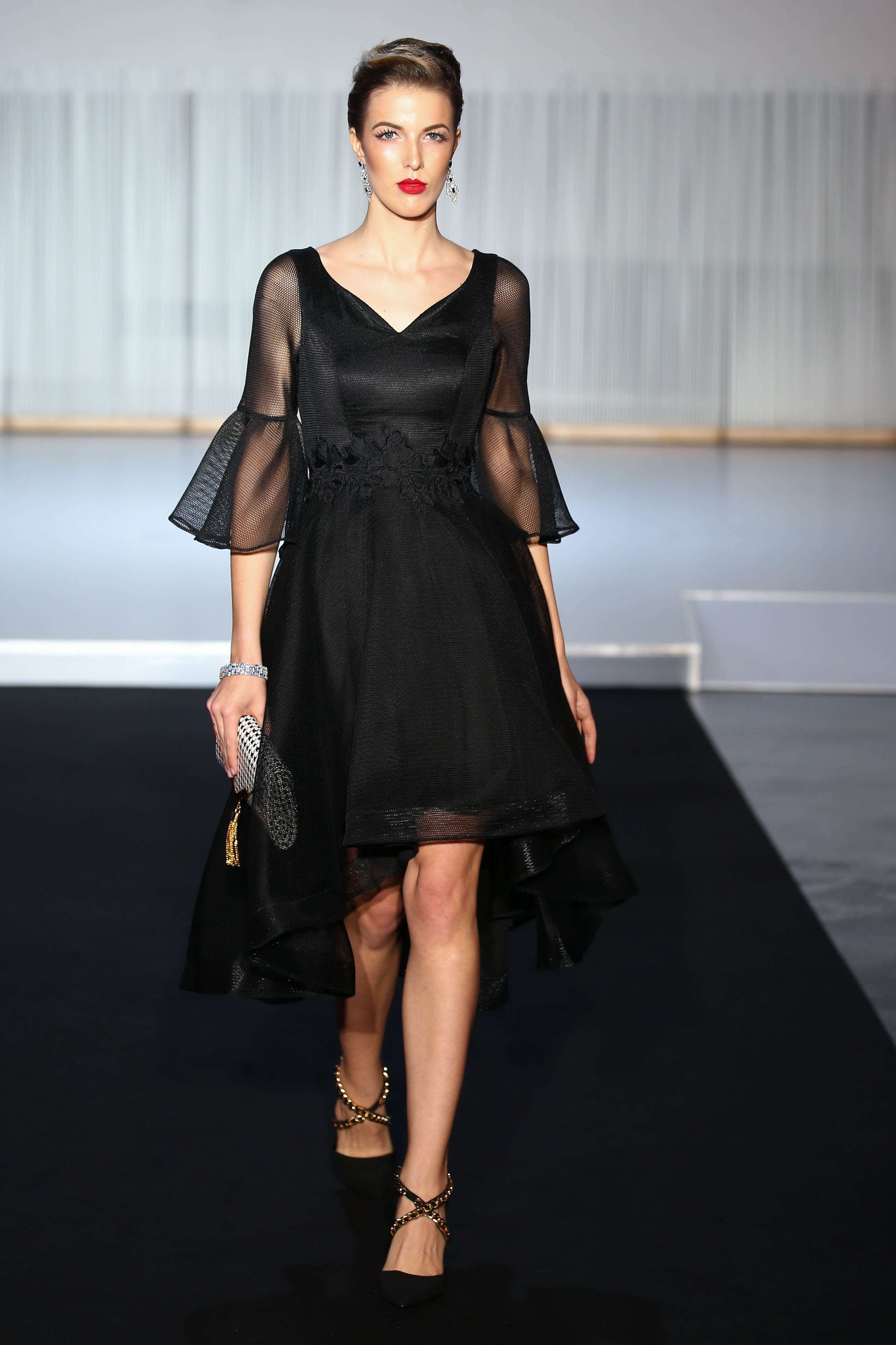 look 5 - robe midi en resille technique noire a manches evasees - black technical mesh batwing midi dress - Meryl