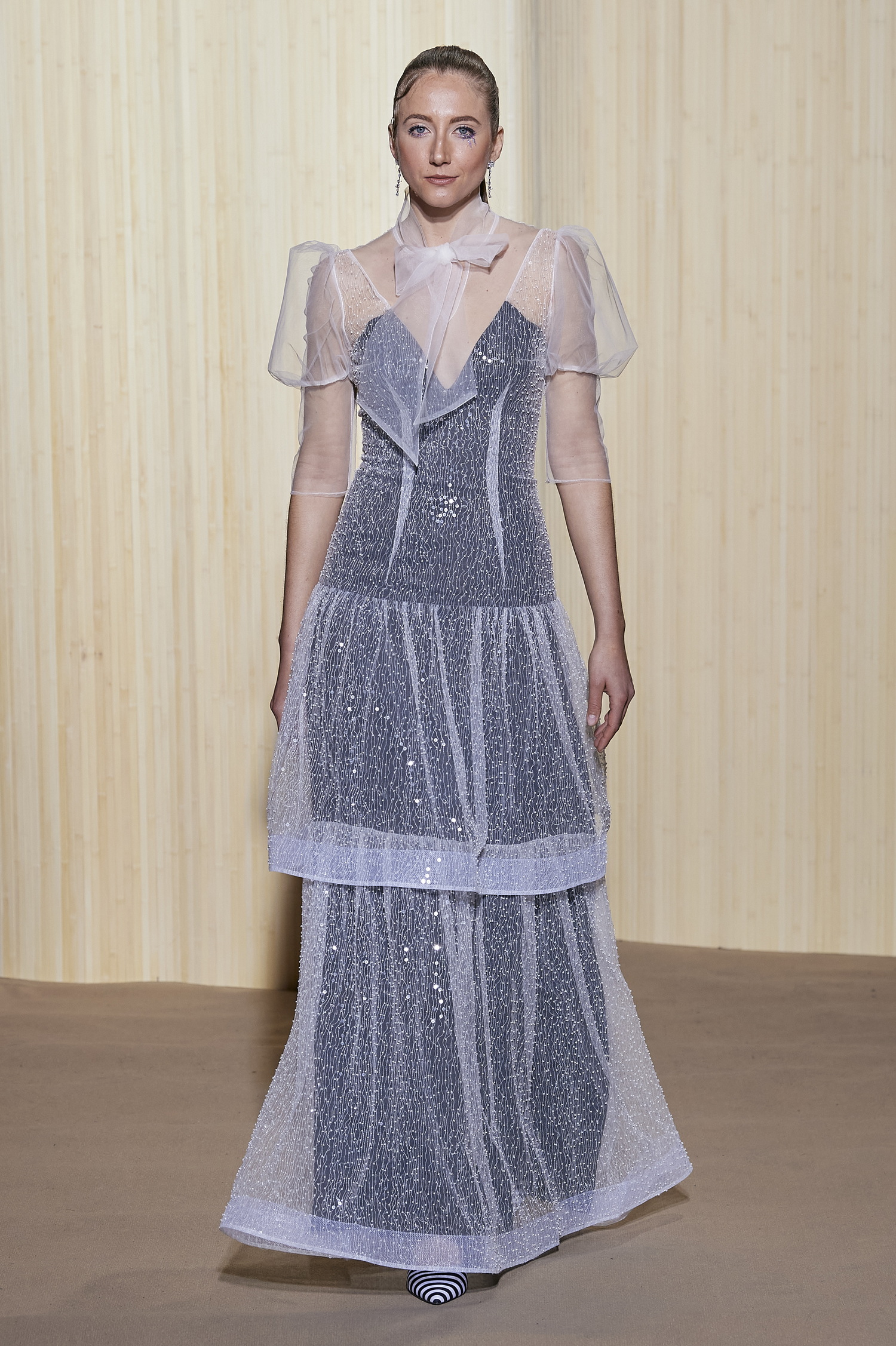 Le temps d’un instant, Christophe Guillarmé tente ainsi de figer la beauté des étoiles pour lafaire rayonner au coeur de ses silhouettes.