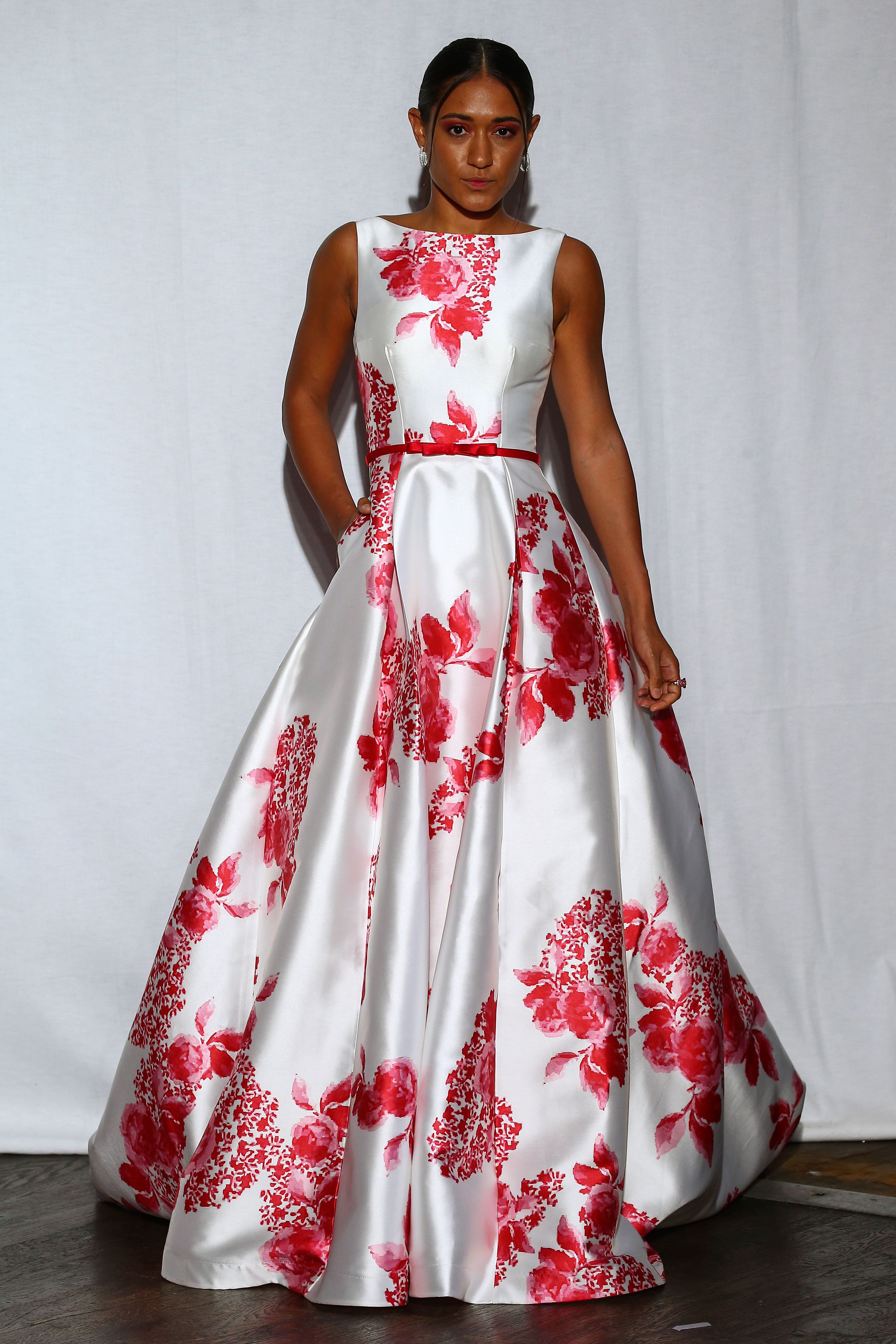 Christophe Guillarme - Collection Printemps-Ete 2017 - Bloody Madone - Balajo - PFW - look 30 - maxi robe en faille de soie blanche imprimee rouge - red printed white mikado silk maxi dress - Josephine Jobert