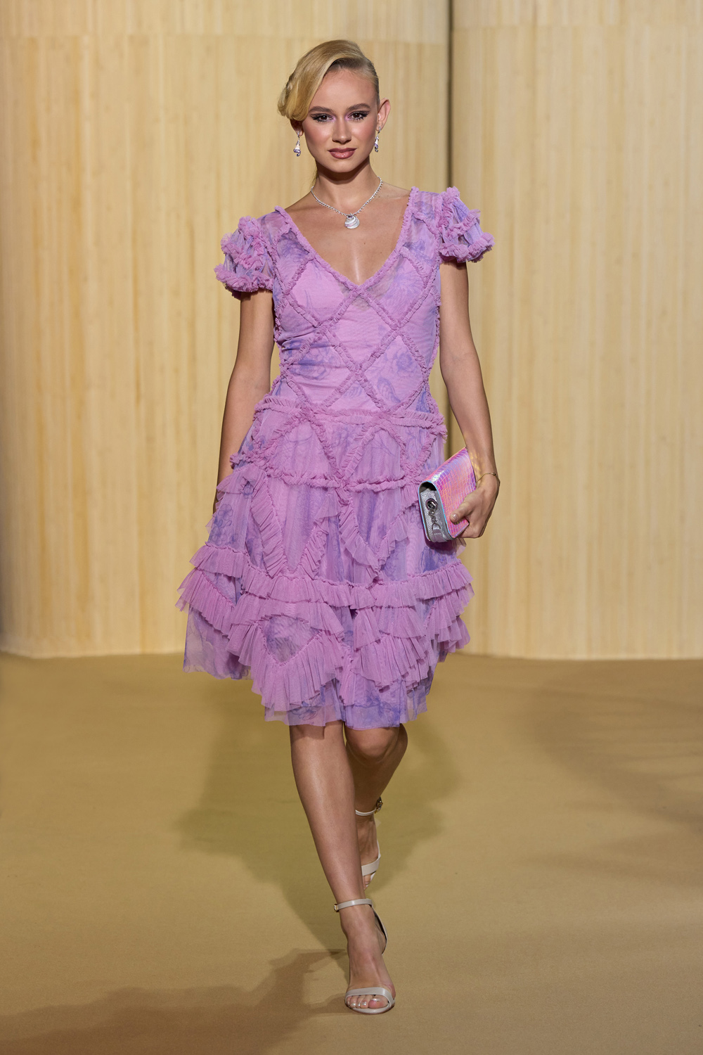 For his Spring-Summer 2025 collection, designer Christophe Guillarmé was inspired by the cult 1968 movie Barbarella starring Jane Fonda and which is now the subject of a remake with Sidney Sweeney, an explosive mix of science fiction, liberation of women, and sexual revolution through this space adventurer character.