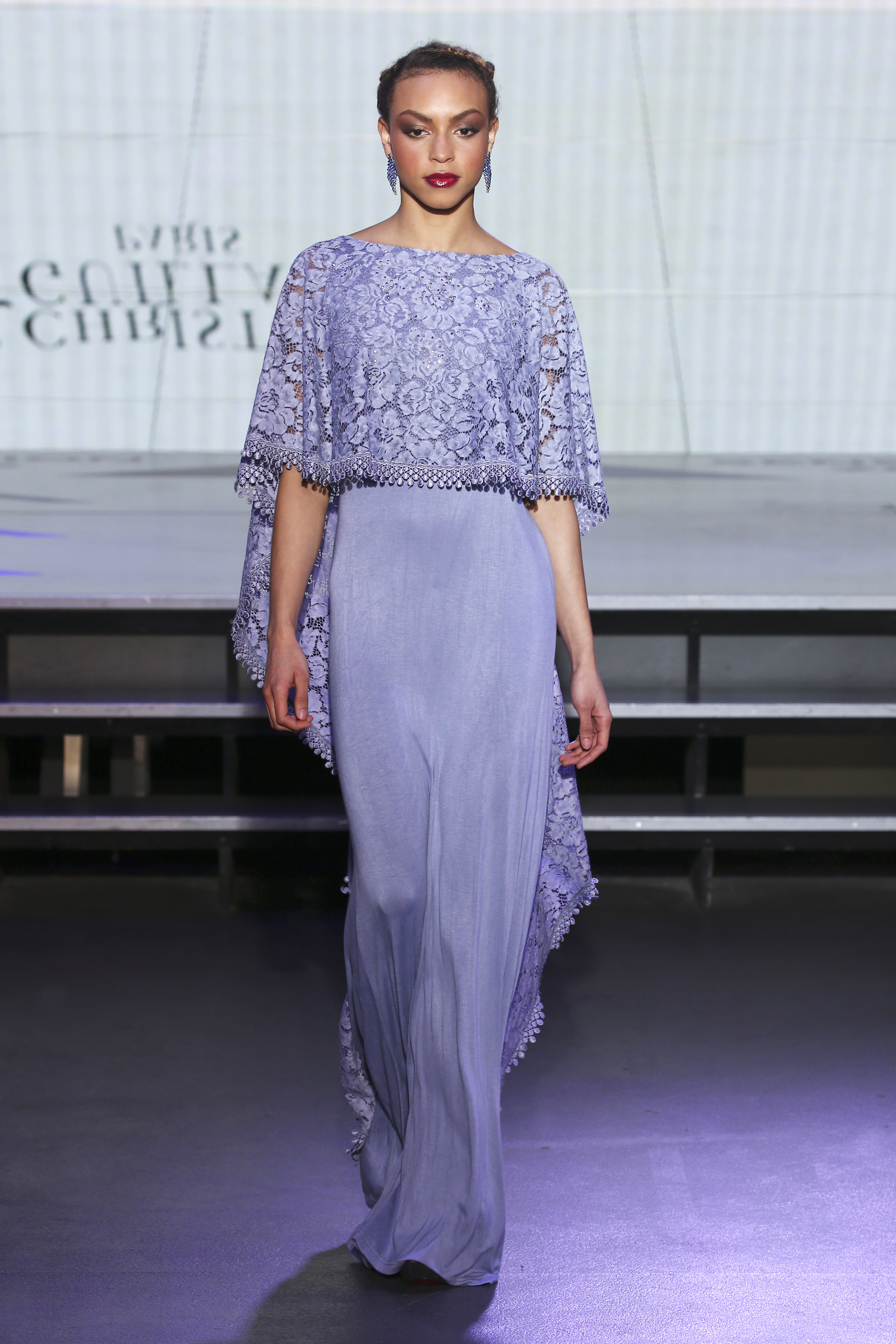 Colour range turns from pigment dyed lace in beige or amethyst, to stately ruby red, also navy blue which becames the new black, not to miss as well touches of soft pink to finalize this palette with lots of graphic accents. Versatility and unconsciousness are fused on styles in an edgy retro glam mix