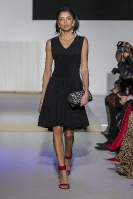 Le tulle vaporeux est à l’honneur dans des teintes de sable doré et de rose fanée alors que la faille de soie se teinte de coloris rouge rubis appliquée de dentelle ton sur ton dans une encolure bateau, ou bien se pare d’un rutilant imprimé de papyrus technicolor sur fond noir. L’audace de la reine se retrouve dans les coupes tant dans un effet mille-feuilles de résille plumetis volantée que dans la modernité des savants pliages de feuilles de papyrus prune inspirés d’origami.