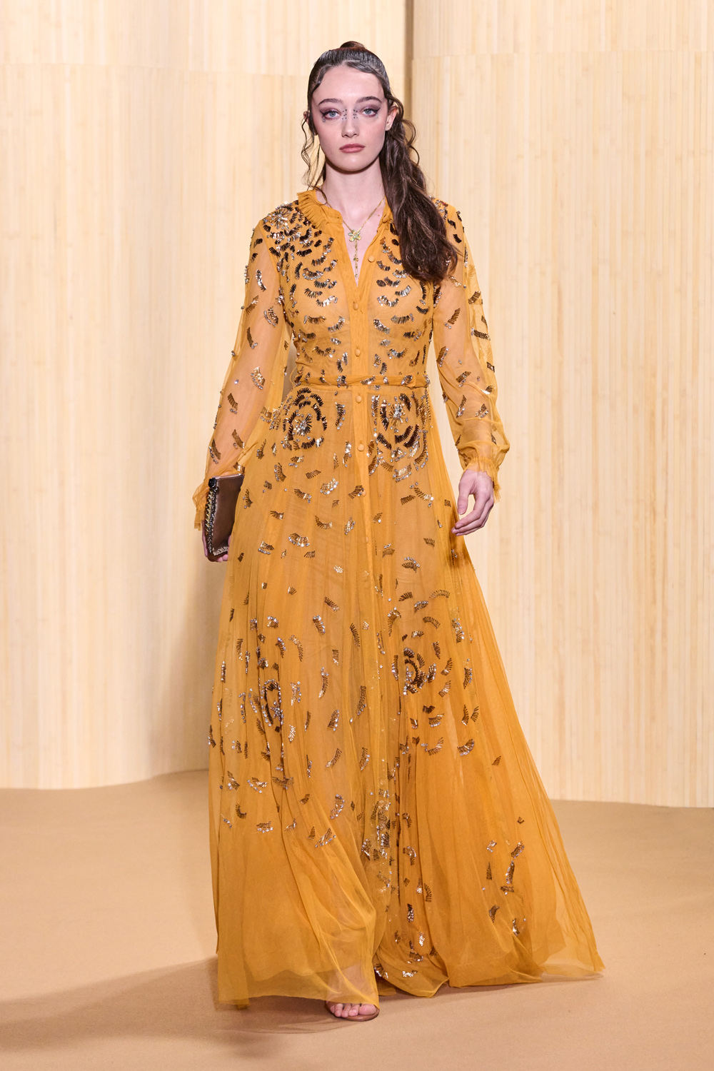 Pour sa collection Automne-Hiver 2024, le créateur Christophe Guillarmé a été inspiré par l’espionne et artiste de cabaret Mata Hari courtisane et égérie dramatique de la Belle Époque, danseuse teintée orientaliste mais également intrigante, son destin tragique et glamour est captivant. Une glamazone à l’image de sa contemporaine Calamity Jane.