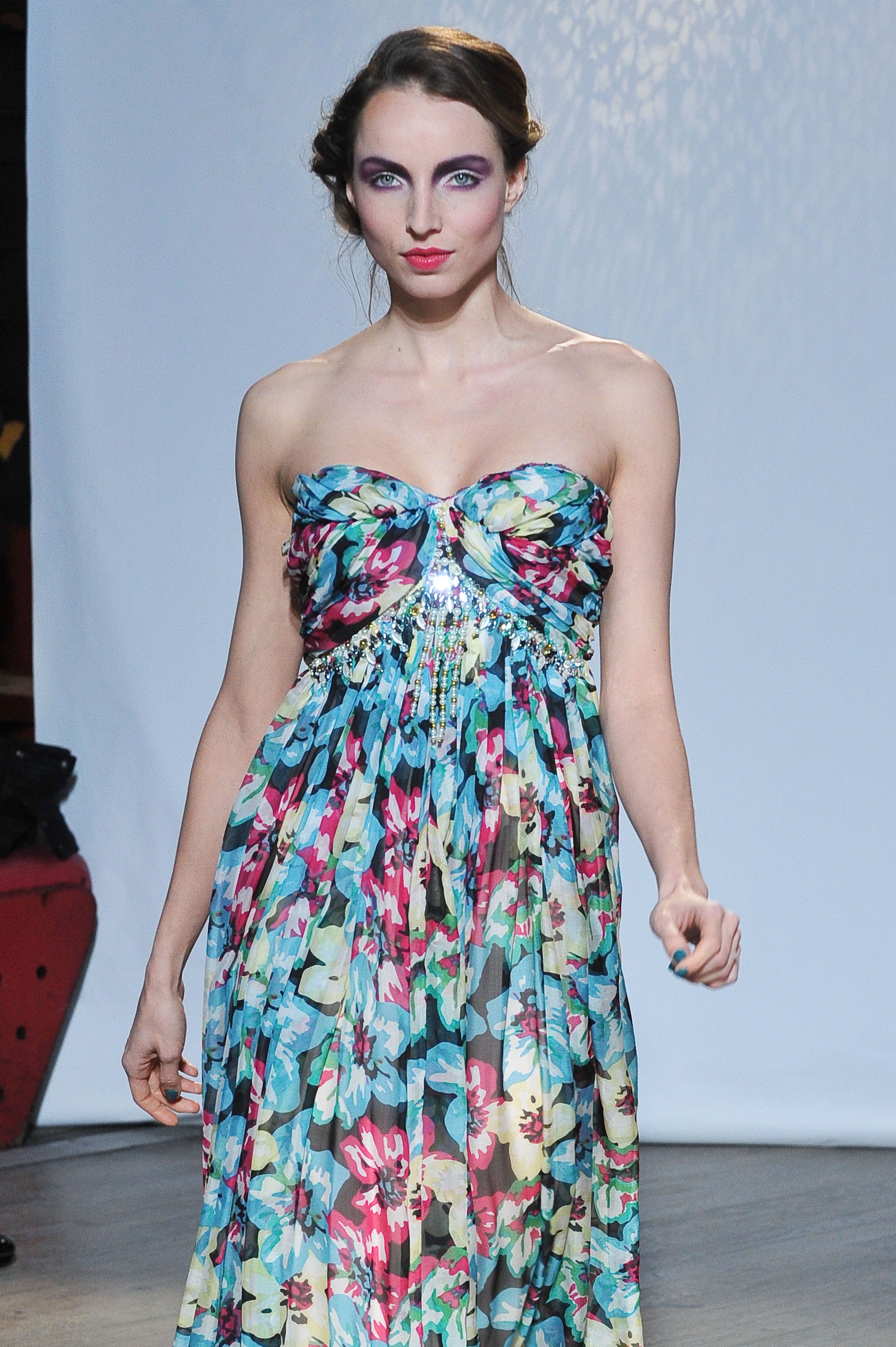 Les coloris sont le rouge rubis, le rouge indien, le carmin, le bleu roi, le noir en transparence de tulle rebrodé, enfin de l’argent en pailletage all-over dégradé ou en jersey.