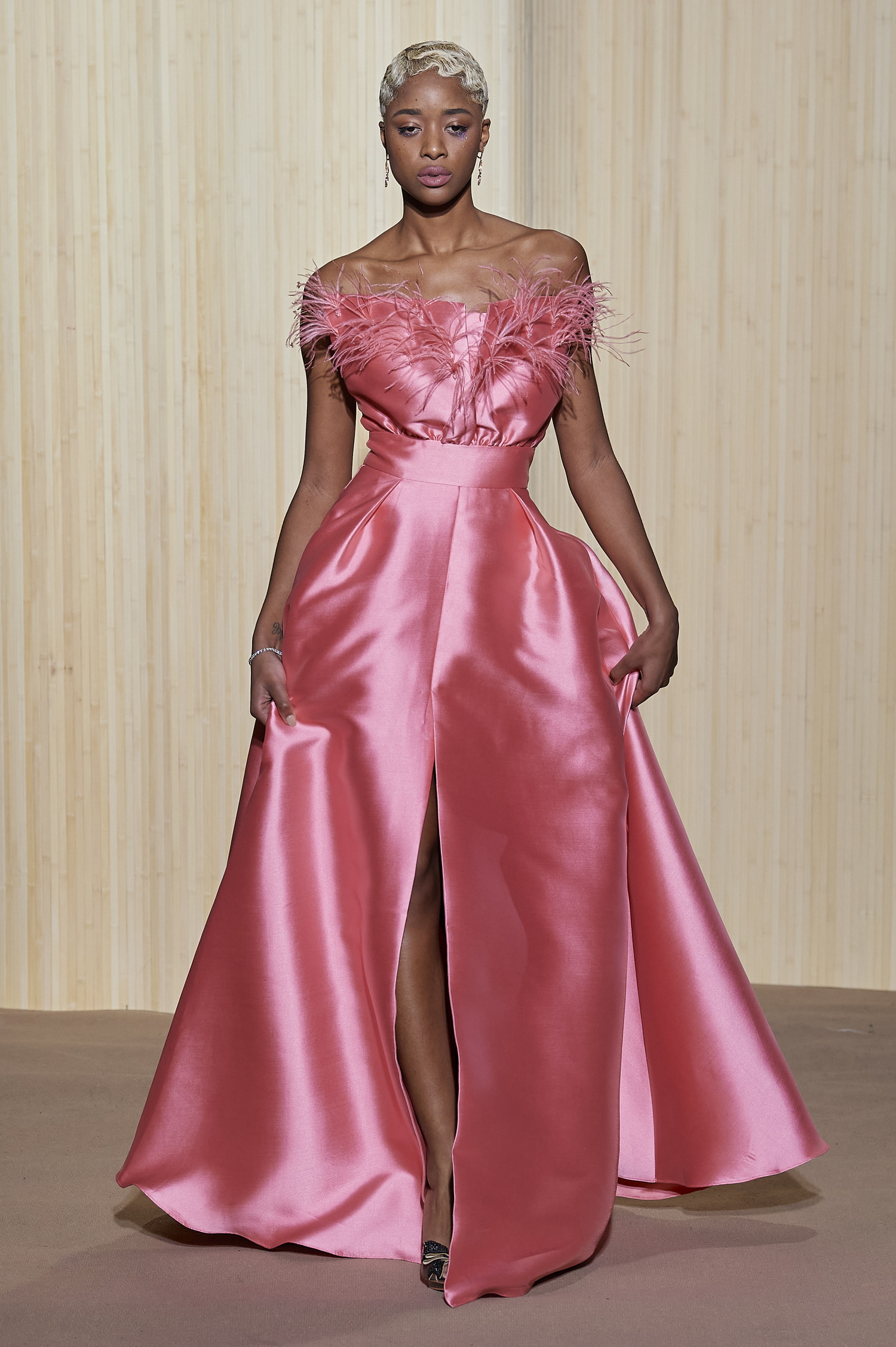 Le temps d’un instant, Christophe Guillarmé tente ainsi de figer la beauté des étoiles pour lafaire rayonner au coeur de ses silhouettes.