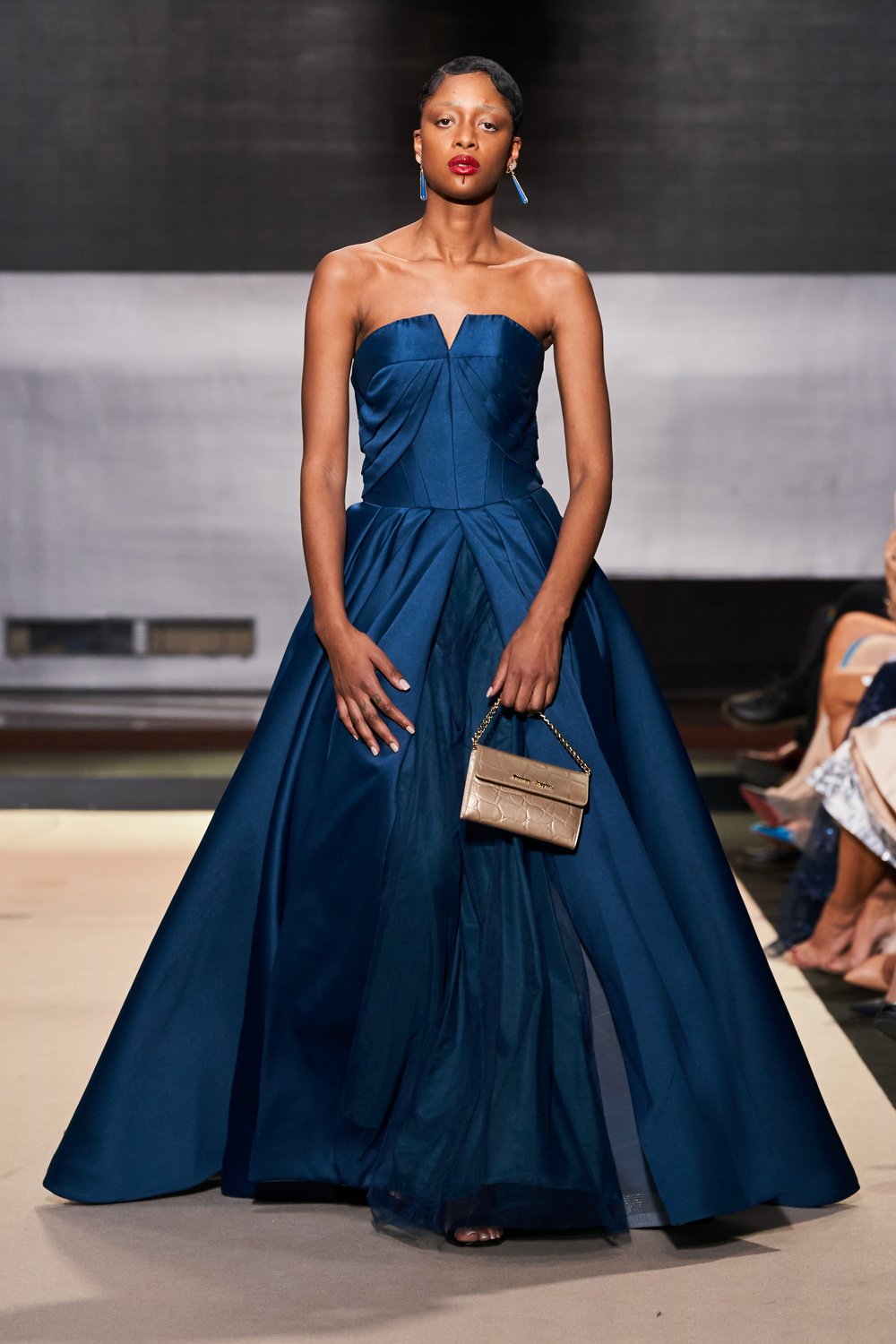 look 25 - robe bustier Christophe Guillarmé en faille de soie bleu pétrole & jupe à panneaux - Christophe Guillarmé maxi bustier dress with panel skirt in mikado duck blue silk - Tracy