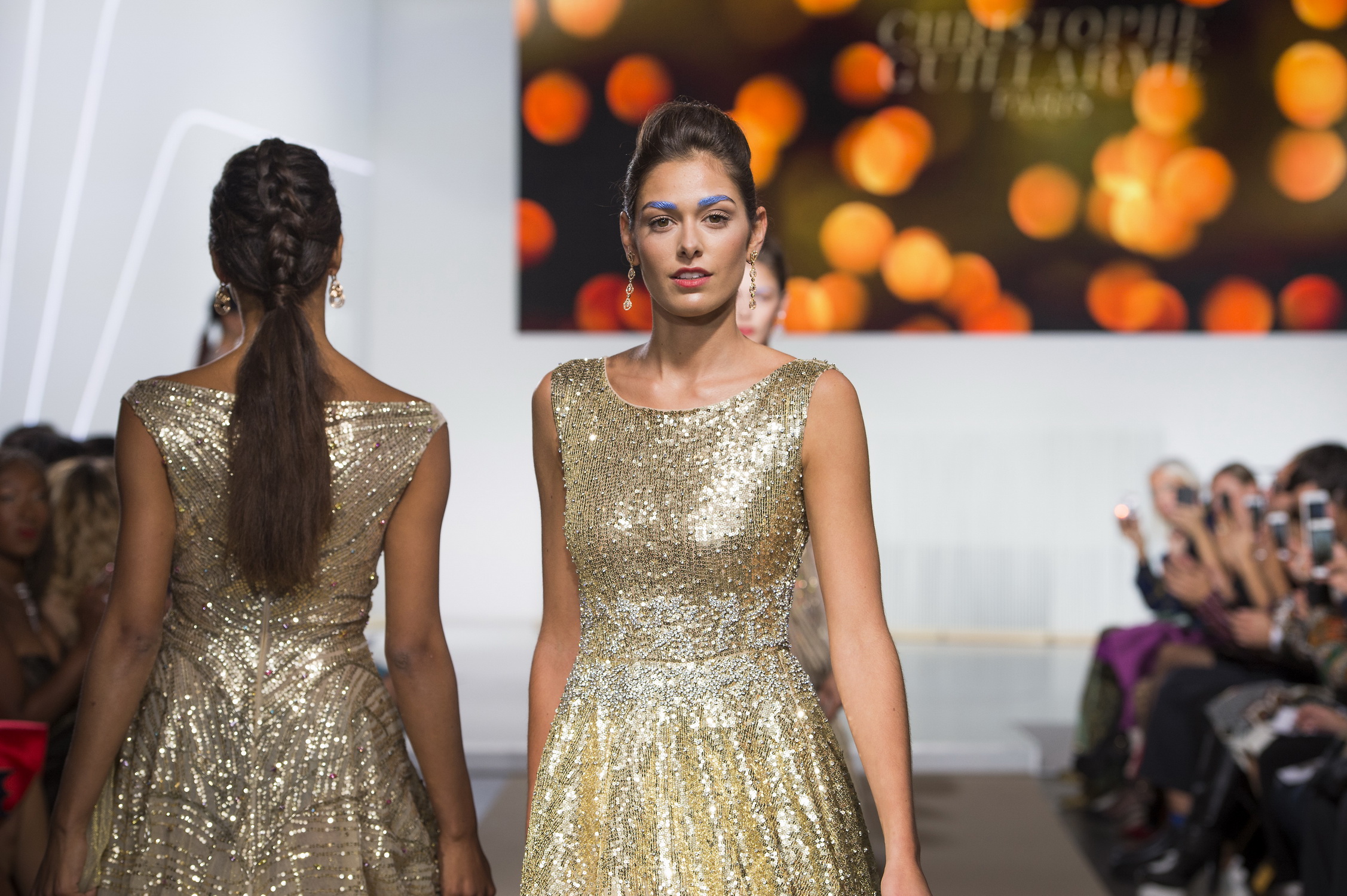 look 23 - maxi robe en tulle nude rebrodee de sequins dores et de cristaux - nude tulle maxi dress covered with golden sequins and crystals - Lison di Martino