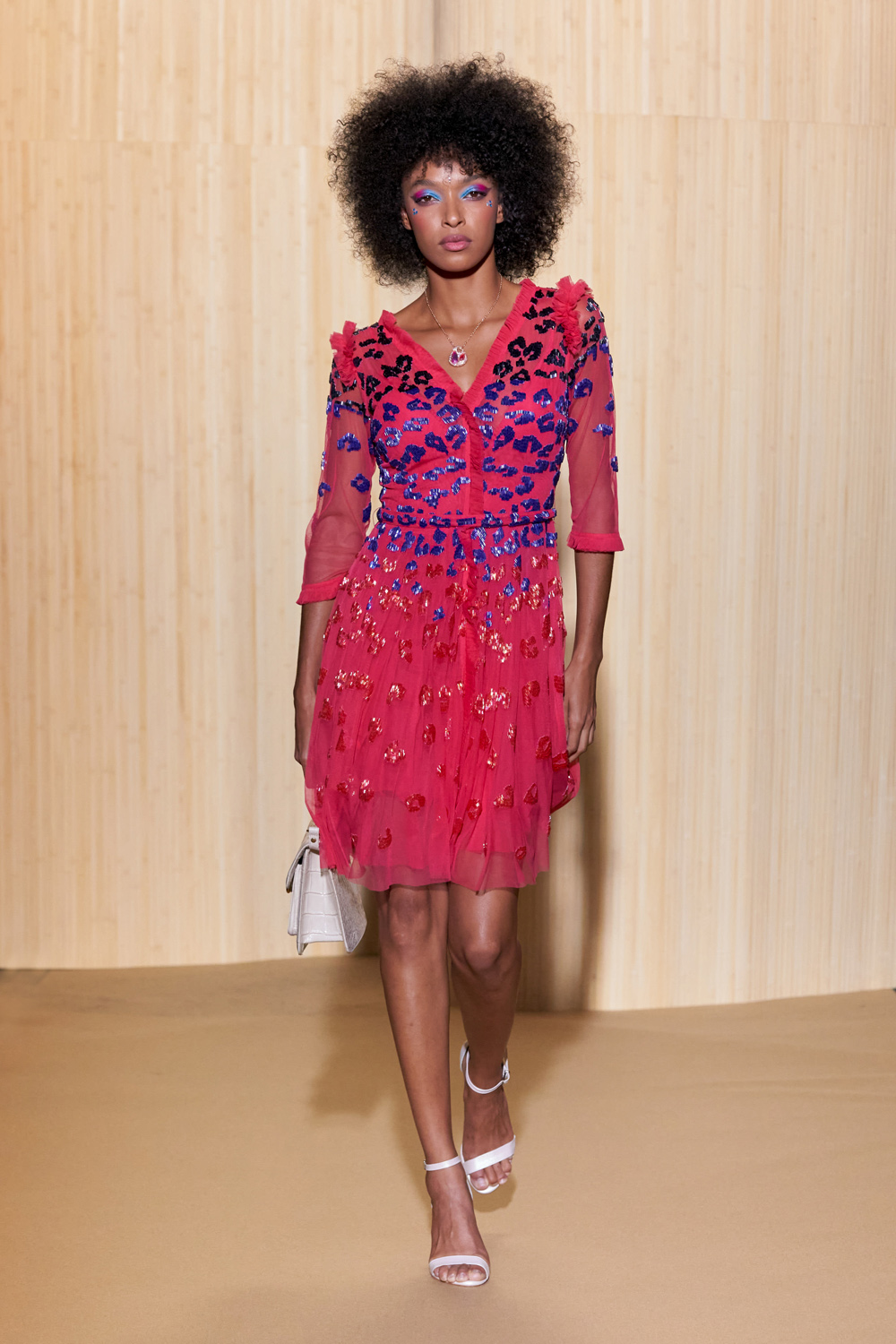 look 1 - robe courte en tulle rose fluo rebrodé en dégradé - short neon pink tulle dress gradiently embroidered - Ophély Mézino