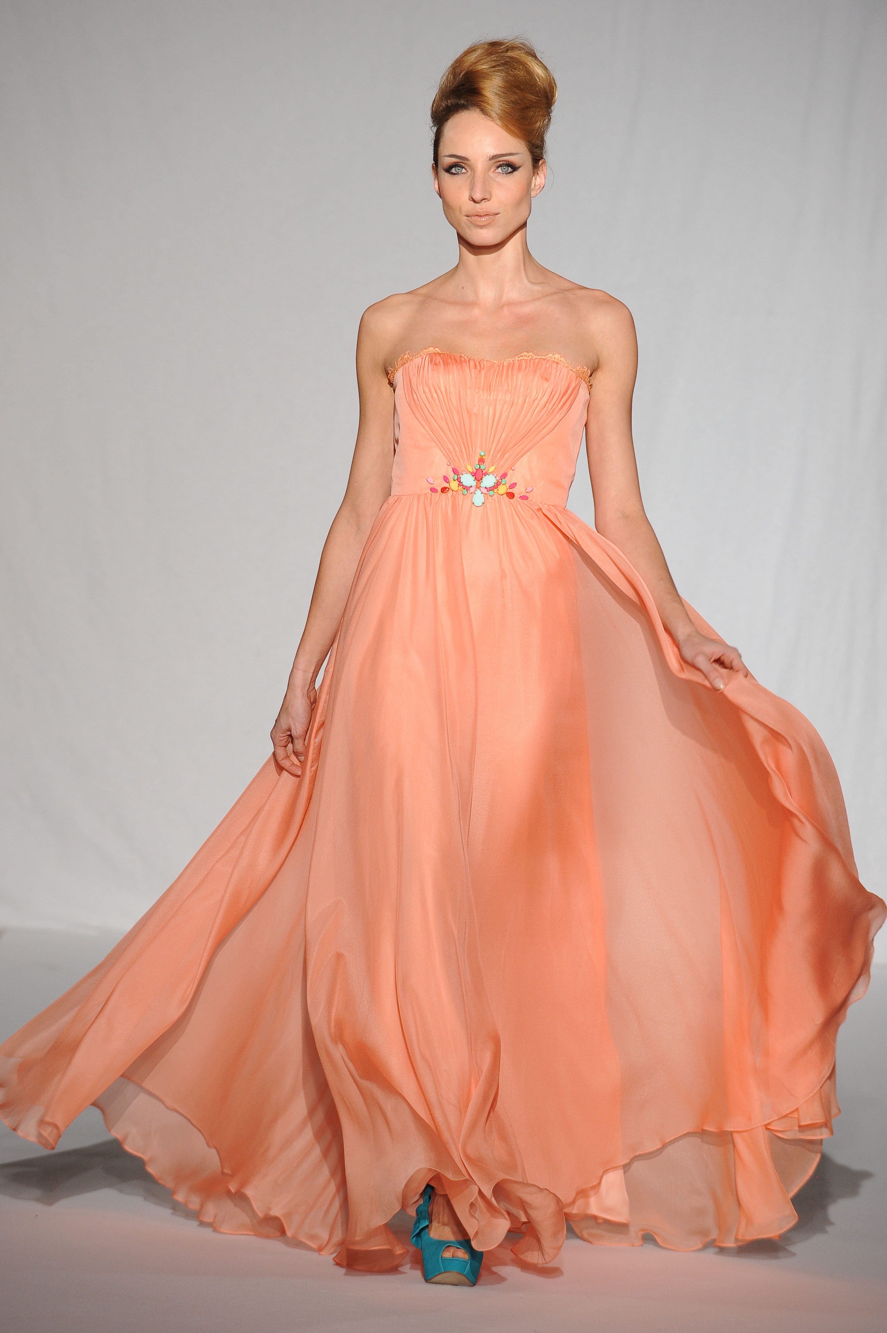 Le bas des robes s’évasent en corolle pour réinterpréter le new look. Une ambiance 50’s revisitée à l’instar de la série Mad Men, plébiscitée par les Socialites entre Madison et Park avenue telle Doris Duke ou Barbara Hutton, qui aurait rencontré la danseuse Etoile Britannique Lady Margot Fonteyn en fin de répétition toujours dans son tutu…