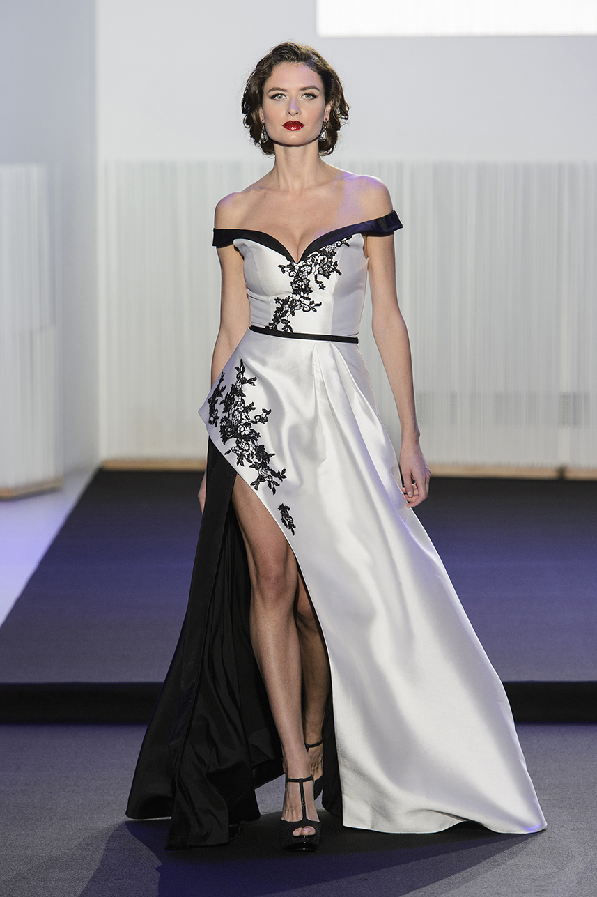 Le gold est à l’honneur, version transparence ou encore appliqué de cristaux. Une esthétique « Old Hollywood » dans le choix des formes tant une robe sirène à bustier ou une encolure bateau esprit rétro.